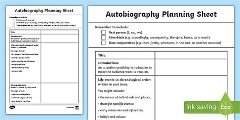 Read autobiography plan sheet third grade Doc BookBoon